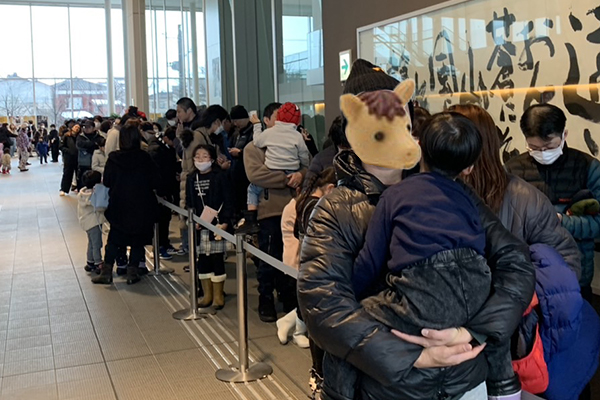 1月11日に行われた「けしごむつかみ取り」には、配布前から整理券を求める長い列が。